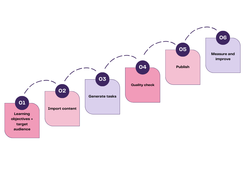 Start with a concrete goal: What should participants be able to do afterward? Clarify who the learners are: new hires, leaders, students, or a specific role. A clear goal makes it easier to choose the right task type (quiz, reflection, case) and the right difficulty level.